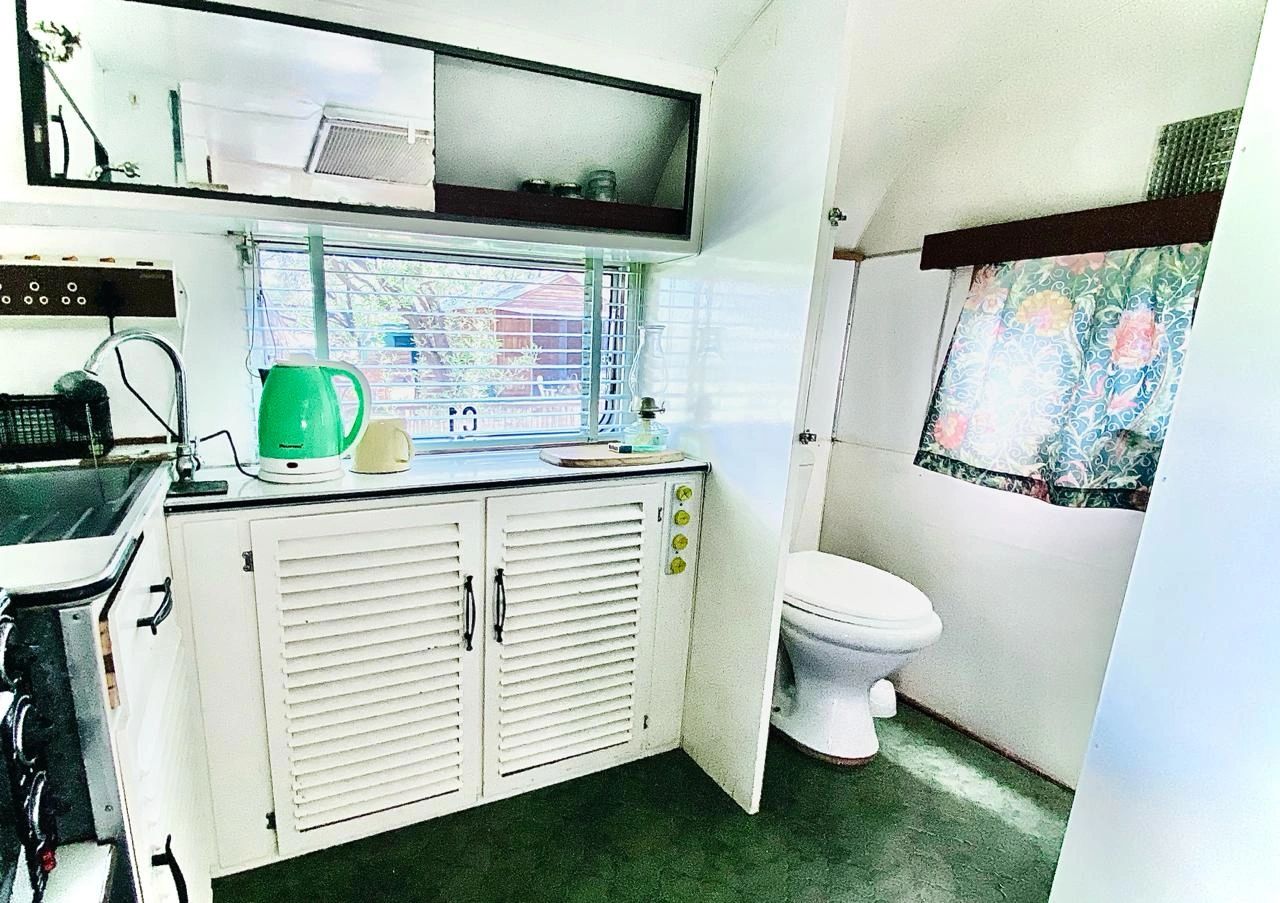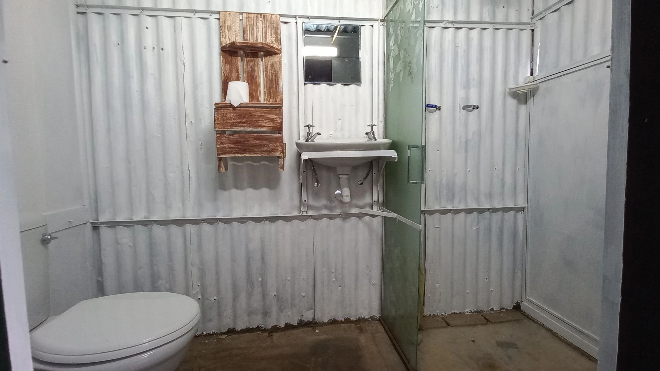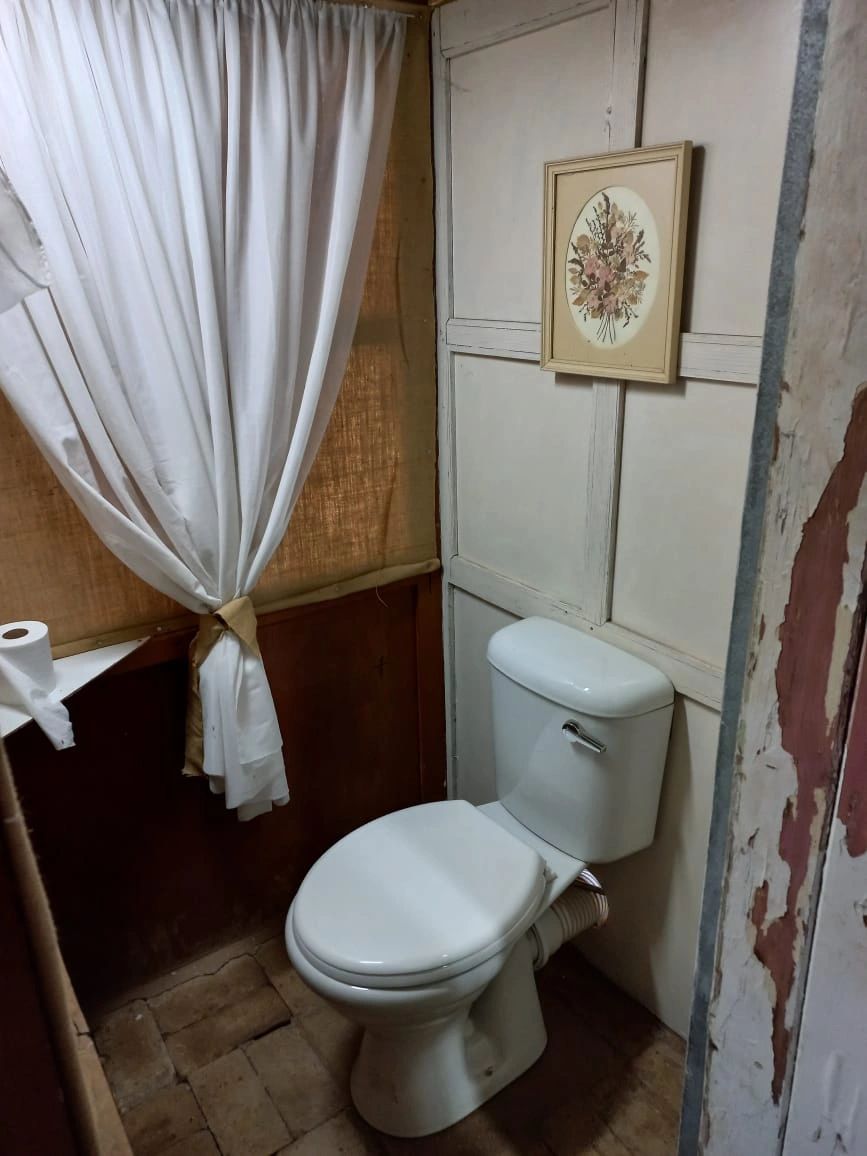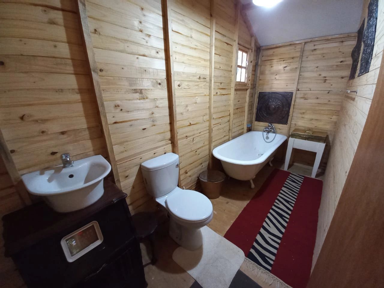 A shared kitchen is convenietly located between the tents, fully equipped for preparing meals. The shared bathroom includes a toilet and a hot - water shower for your comfort.