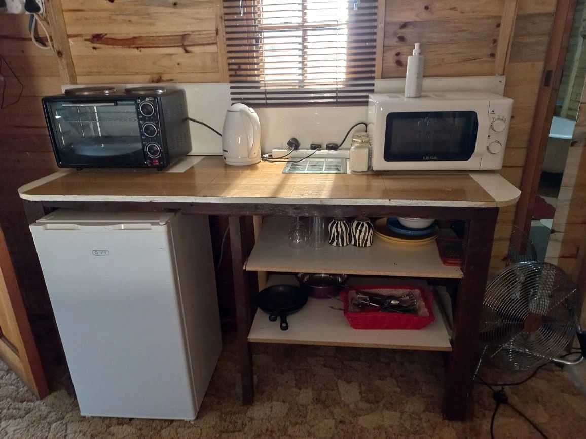Guests share a small outdoor kitchen, braai area, where you can prepare meals, enjoy a sunset braai, and soak in the farm atmosphere.