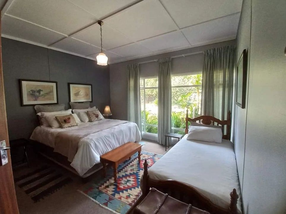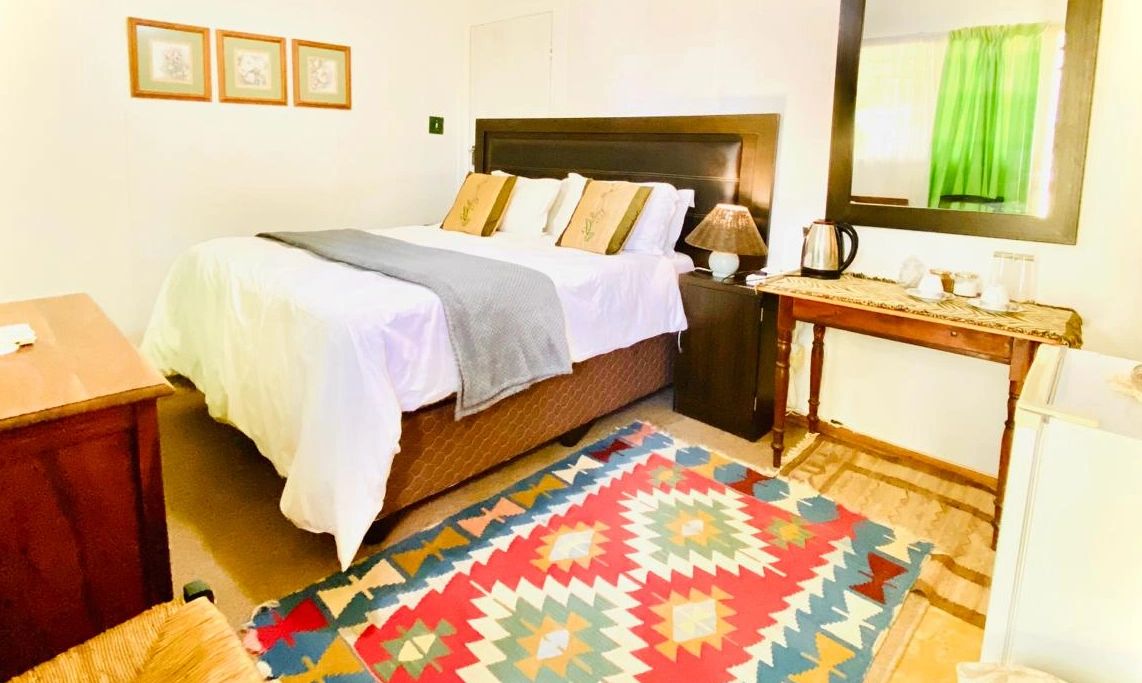 Our Kwevoel Room is a cosy, spacious spot made for couples who love a touch of country comfort. It's furnished with a comfy queen-size bed, a handy desk, and an en-suite bathroom with a bath for a long, relaxing soak. You'll find air-conditioning for the warm days, a mini fridge for your snacks, and everything you need to make a good cup of tea or coffee. Step outside to your own private entrance and patio, where you can sit back and take the quiet garden and the birds that call it home.